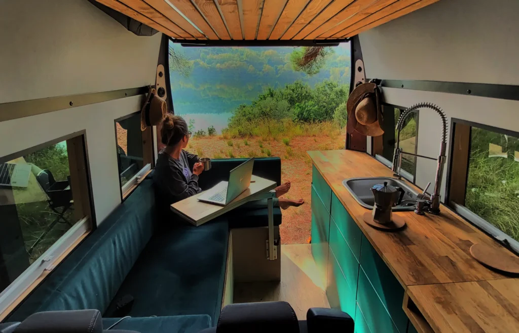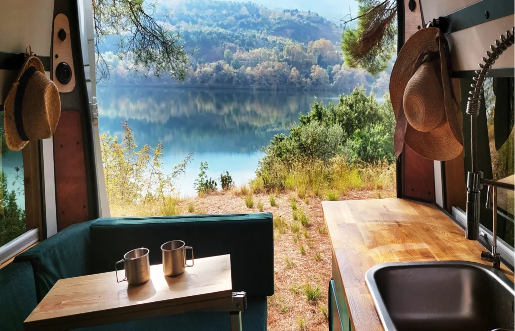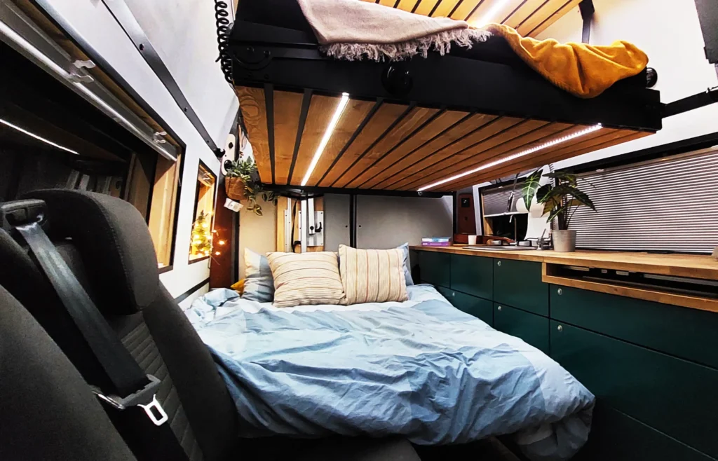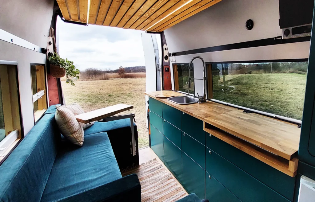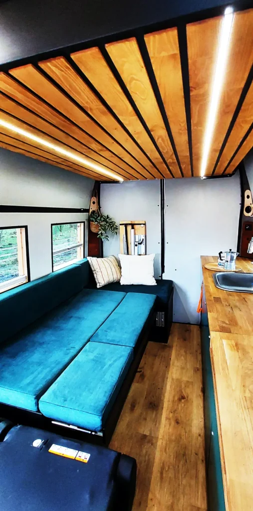 W naszym kamperze jak w domu-znajdziesz tam swoje miejsce. Mimo że to 6m2 to zadbaliśmy o to abyś czuł się swobodnie i aby było miejsce na wszytkie najważniejsze dla Ciebie rzeczy